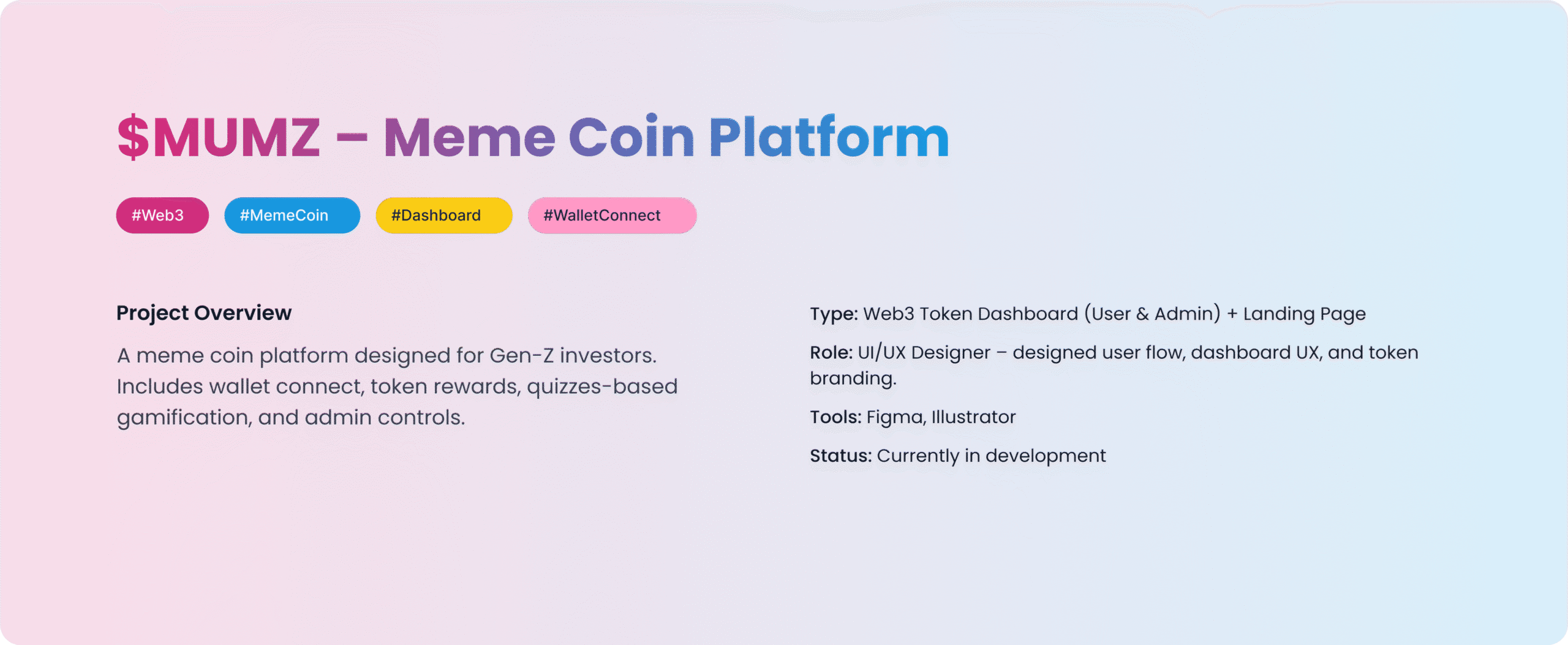Crafted a fun, approachable look using warm gradients, cartoon elements, and rounded UI to reflect the token’s playful tone.
