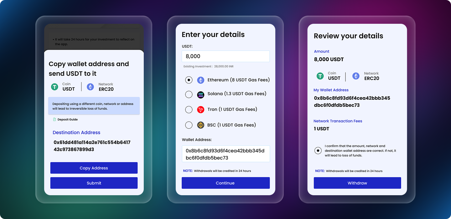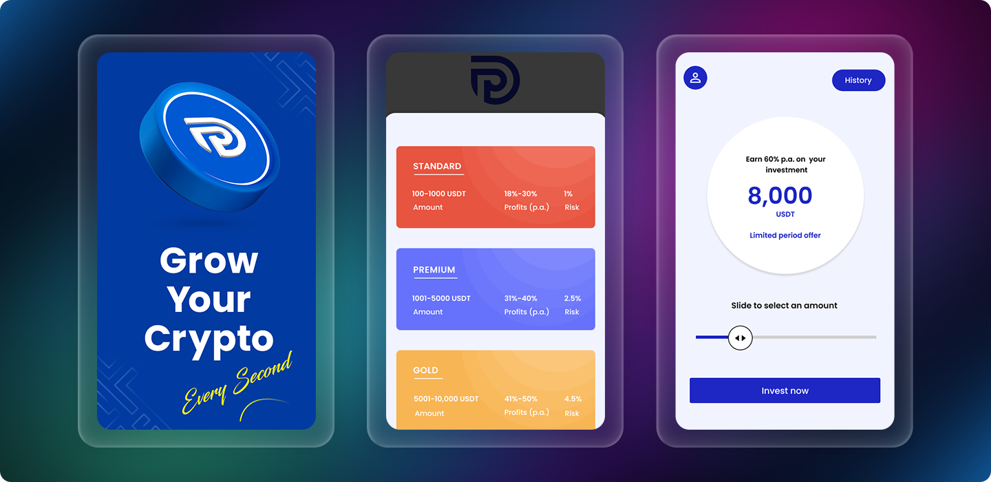 - Simplified the investment process for new crypto users with clear visuals and guided interactions.