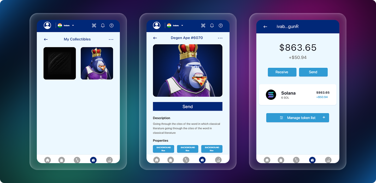 Lets users create and manage crypto wallets, store collectibles, and send or receive tokens securely.
