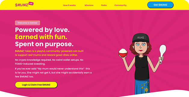 Community coin platform featuring wallet connect, referral rewards, and gamified quiz-based earning.