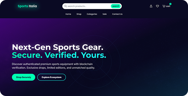 Blockchain-verified marketplace for authenticated sports gear with token rewards and NFC product scans.