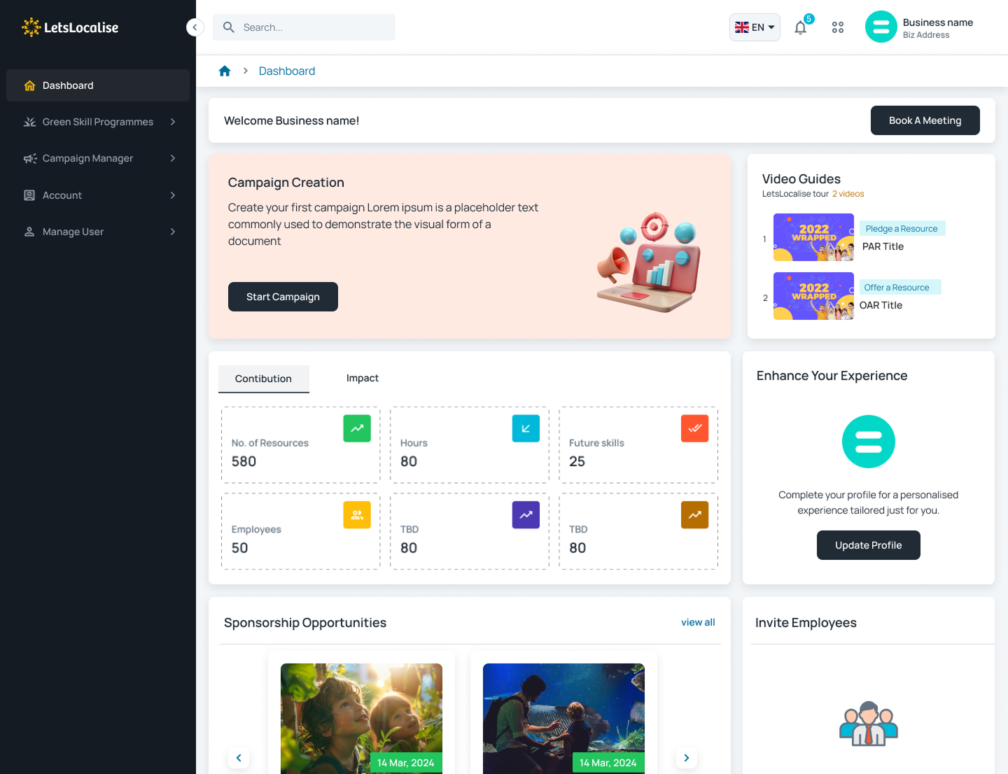 I led the UI/UX design for LetsLocalise’s internal dashboard, shaping the complete experience for schools, businesses, pledgers, and admins. The dashboard design features intuitive navigation, clear data presentation, and efficient task workflows, enhancing productivity and engagement. I focused on building a scalable and visually cohesive system that delivers seamless interaction across all user roles and devices.