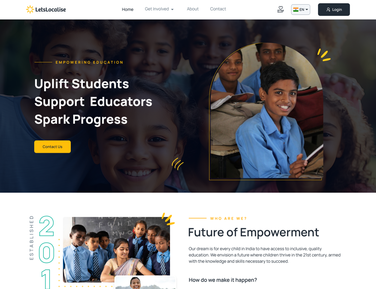 I designed and developed the LetsLocalise Foundation website on WordPress, aligning its design with the foundation’s mission and community values. The platform delivers a user-friendly, inclusive, and responsive experience tailored for the Indian audience. Through intuitive navigation and accessible layouts, the site effectively communicates initiatives while enhancing engagement and local outreach.