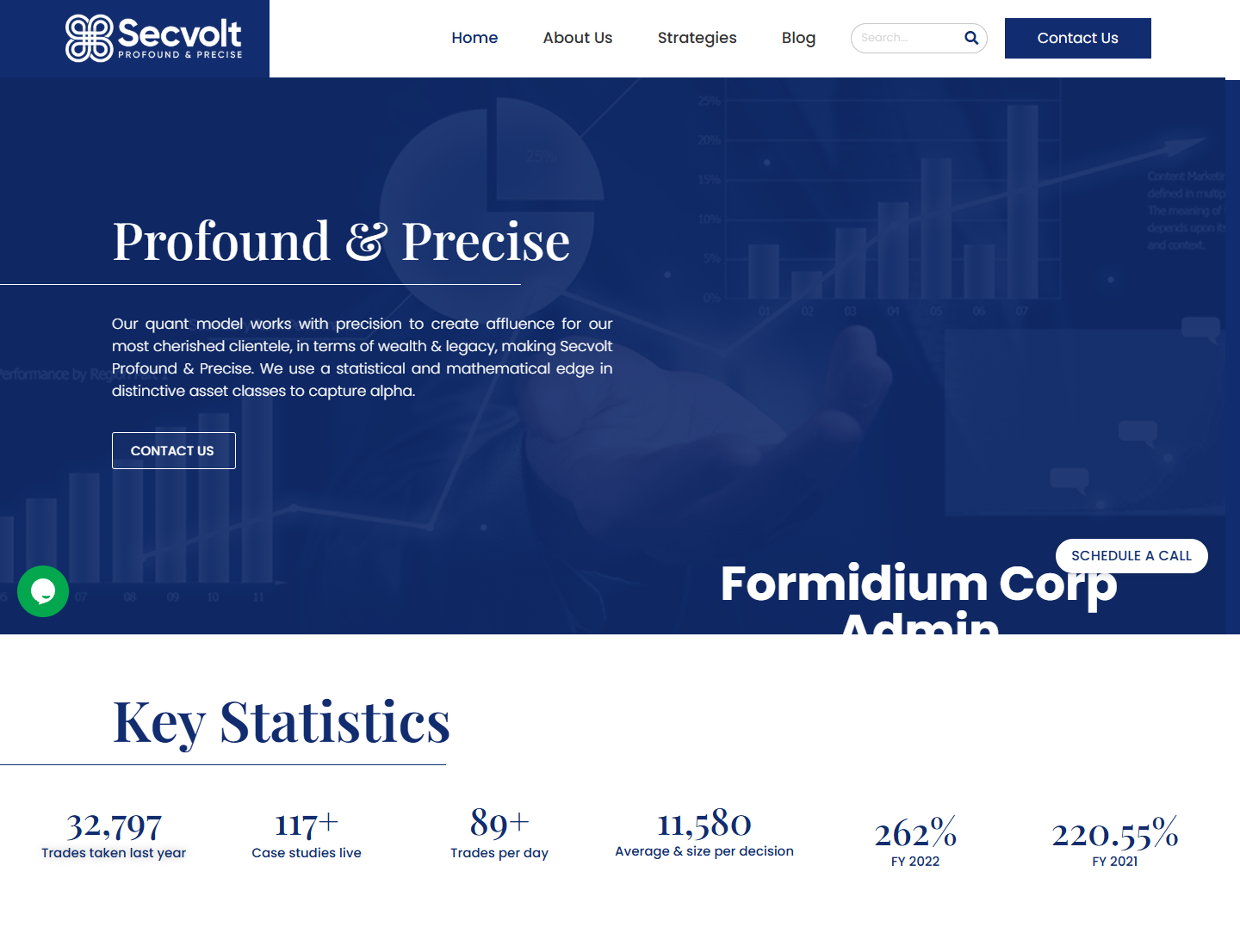 Secvolt, Inc. is a global investment firm leveraging quant models and risk management to maximize returns. I designed and developed its WordPress-based blog website and a SaaS product dashboard, optimizing data visualization and user experience.